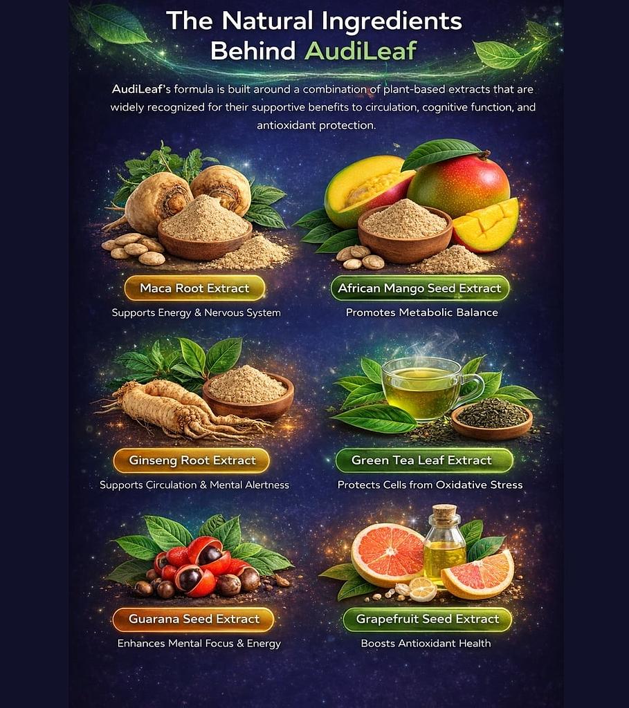 While the precise formulation may differ, AudiLeaf usually comprises a combination of natural elements such as: