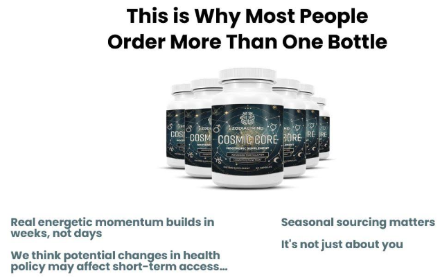 At its core, Cosmic Core, with establishments in the USA, CA, UK, AU, NZ, and IE, seeks to aid users in aligning their mental, emotional, and physical states with the distinct energetic profiles of their zodiac signs. Unlike conventional nootropics or mood-regulating supplements that take a one-size-fits-all approach, Cosmic Core Zodiac Mind claims to respect the complex variations among signs—such as Aries' impetuous energy or Pisces' emotional delicacy—and aims to stabilize, enhance, or balance those traits as needed. Cosmic Core Zodiac Mind is positioned not merely as a tool for improving cognitive function or reducing stress but as a holistic resource for self-awareness, growth, and harmony. Featuring a proprietary blend of nootropics, adaptogens, botanicals, and energizing substances, it addresses diverse aspects of well-being, including cognition, mood, spiritual alignment, and sustained vitality. Ultimately, Cosmic Core Zodiac Mind transcends simple productivity or cognitive performance; it centers on living in profound congruence with your cosmic essence.
