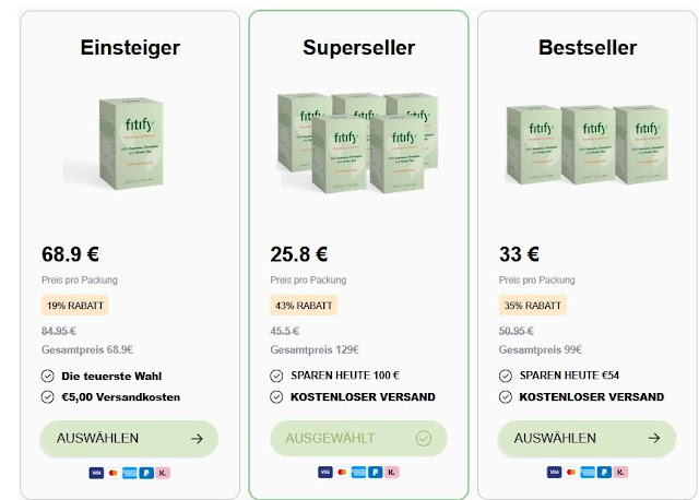 Fitify Kapseln DE, AT, CHzu erwerben, besuchen Sie die offizielle Fitify-Website, da das Produkt ausschließlich dort erhältlich ist und nicht über andere Online-Plattformen oder im Einzelhandel. Die offizielle Website bietet eine sichere Kaufumgebung und garantiert die Echtheit des Produkts. Die Fitify-Formulierung ist in verschiedenen Packungsgrößen mit attraktiven Rabatten erhältlich, die erhebliche Einsparungen ermöglichen. Das harmonische Zusammenspiel dieser Komponenten sorgt für ein ausgeglichenes Verdauungssystem und fördert eine gesunde Verdauung mit Fitify.