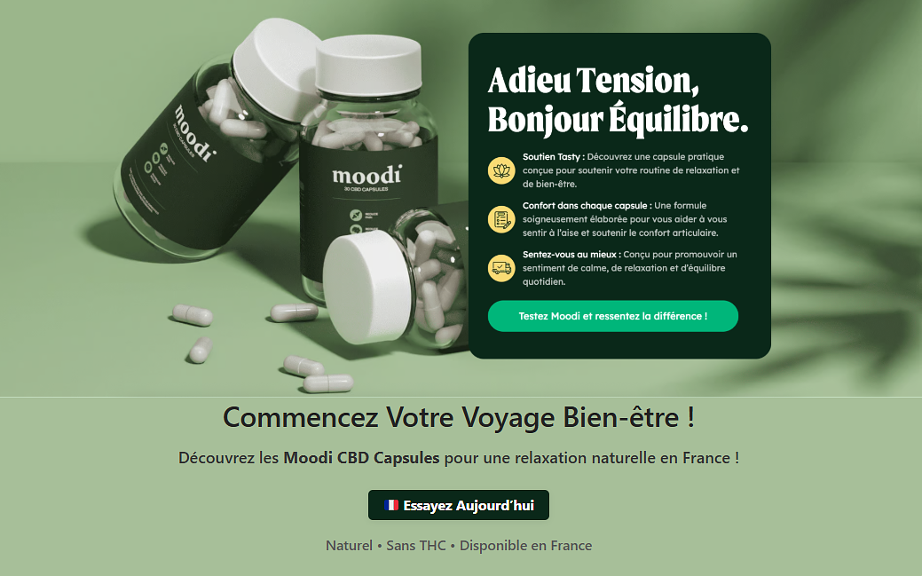 En 2025, alors que le stress, l’anxiété et les troubles du sommeil touchent de plus en plus de Français, les compléments au CBD gagnent en popularité comme alternatives naturelles. Moodi CBD Capsules se distinguent par leur formule à spectre large sans THC, promettant une relaxation douce, un meilleur sommeil et un soutien à l’humeur sans effets psychoactifs. Ces capsules, faciles à intégrer dans une routine, sont fabriquées à partir de chanvre européen bio pour une qualité optimale. Mais Moodi CBD Capsules France répond-il vraiment aux attentes, ou est-ce un simple effet de mode ? Dans cet avis détaillé de 1000 à 1200 mots, nous analysons les ingrédients, les bienfaits, les retours d'utilisateurs et les éventuels inconvénients de Moodi CBD. Basé sur des données Trustpilot (4.4/5) et le site officiel moodicbd.com, ce guide vous aide à juger si ce produit mérite une place dans votre quotidien. Découvrons ensemble !