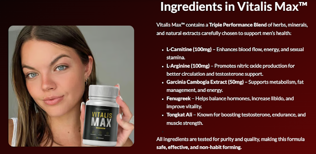 A nutritional supplement known as Vitalis Max Capsules is promoted as a means to enhance male energy and performance. It generally consists of a combination of ingredients purported to support healthy sexual function. Nonetheless, there are variations in the efficacy and safety of these supplements, necessitating careful usage. It is advisable to consult a healthcare professional before utilizing Vitalis Max or any other product to ensure it aligns with your specific needs and health status. The dietary supplement named Vitalis Max promises to enhance male strength and performance. Its safety and efficacy may vary, so it is prudent to seek the advice of a healthcare provider prior to its use.