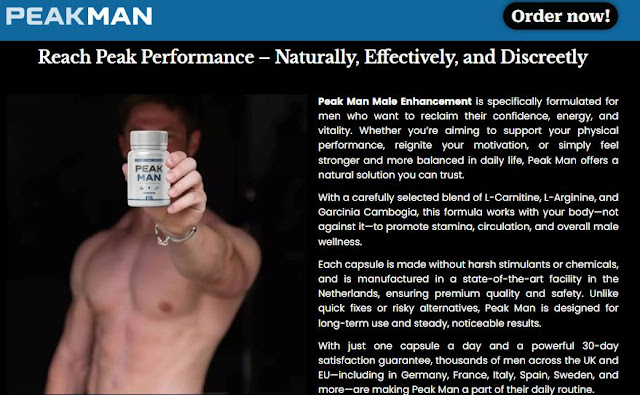 Peak Man UK "Official Website" is a natural, safe, and effective solution for men looking to improve their sexual performance. Its blend of scientifically supported ingredients not only provides immediate benefits such as firmer erections and enhanced stamina but also fosters long-term sexual health. With tho United Kingdomnd of satisfied customers and a lifetime money-back guarantee, Peak Man presents a risk-free opportunity to revitalize your sex life. If you are ready to feel more confident, boost your testosterone levels, and enhance your performance in the bedroom, Peak Man might be the perfect choice for you.