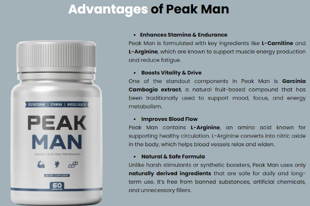 Peak Man UK "Official Website" signifies a significant advancement in male enhancement formulations. With its potent, organic components and sophisticated absorption technology, this supplement has demonstrated its ability to improve energy, endurance, and overall well-being. Whether you aim to elevate your performance in the bedroom, at the gym, or simply require a natural enhancement to your daily liveliness, Peak Man is a product that can assist you in reclaiming your advantage. With genuine, validated outcomes and the endorsement of industry experts, Peak Man presents an appealing choice for men seeking to enhance their lives.