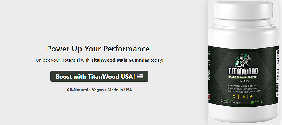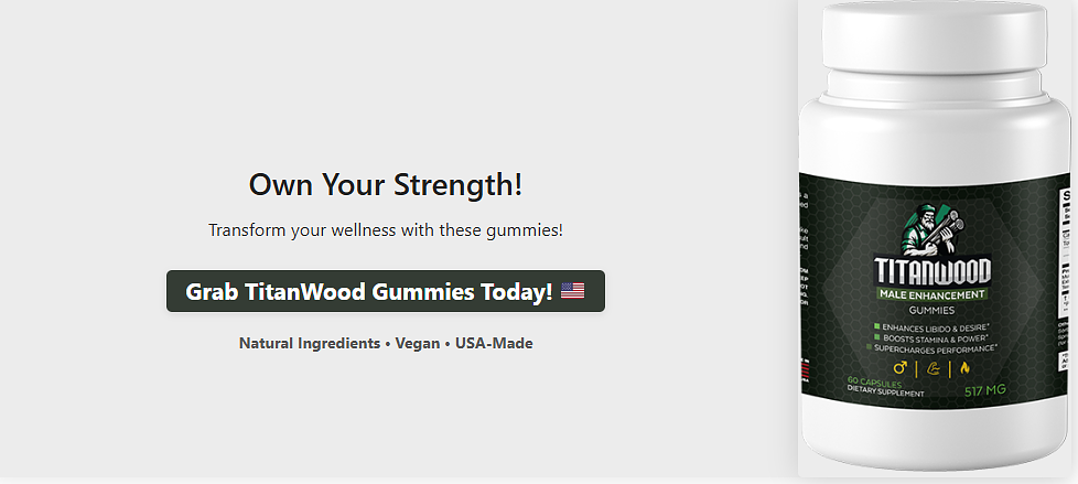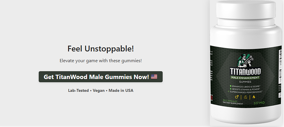 TitanWood Male Enhancement Gummies USA offer a natural, convenient way to enhance male vitality, libido, and energy. With a potent blend of L-Arginine, Tongkat Ali, and Ashwagandha, backed by a 4.5/5 Trustpilot rating, they deliver gradual, sustainable results for many users. While mild side effects or slower results may occur, the gummies’ safety, third-party testing, and 30-day money-back guarantee make them a reliable choice. For men in the USA seeking a holistic supplement to support performance and wellness, TitanWood Male Enhancement is a strong contender when paired with a healthy lifestyle. Try them to reclaim your vitality!